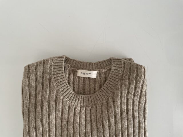 使いやすいリブタイプのセーターはウール100%なのにチクチクしなくて優秀。